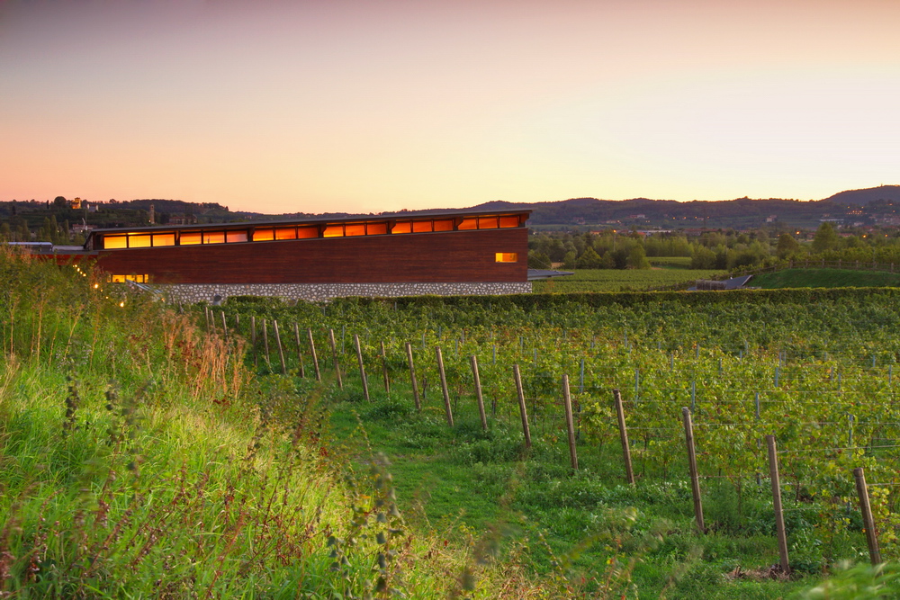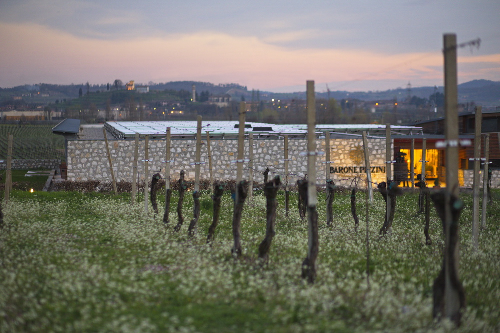 La cantina è costruita con la volontà di ridurre l’impatto ambientale e massimizzare il risparmio energetico. Le scelte architettoniche sono garantiscono un ambiente ideale per produrre vini nel rispetto dell’ambiente. Per questo la struttura, interrata per due terzi e su una superficie di circa 5.600 mq, adotta strategie e soluzioni bioclimatiche. Pannelli fotovoltaici, sistema naturale di raffrescamento, utilizzo di pietra, legno e fitodepurazione delle acque. 25 vigne, dislocate in diverse zone della Franciacorta, si estendono su una superficie di 47 ettari. L’altitudine è di 200/350 m s.l.m. e l’età media degli impianti è attorno ai quindici anni.